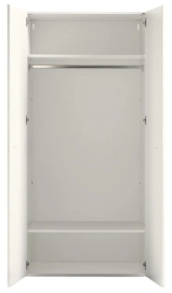 Der hülsta now! minimo Kleiderschrank ist mit 2 Türen ausgestattet und innen befinden sich 2 Einlegeböden und 1 Kleiderstange.