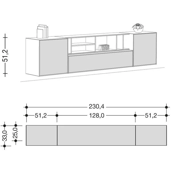 Gesamtmaß: 72,2 x 230,4 x 33 cm (H x B x T)