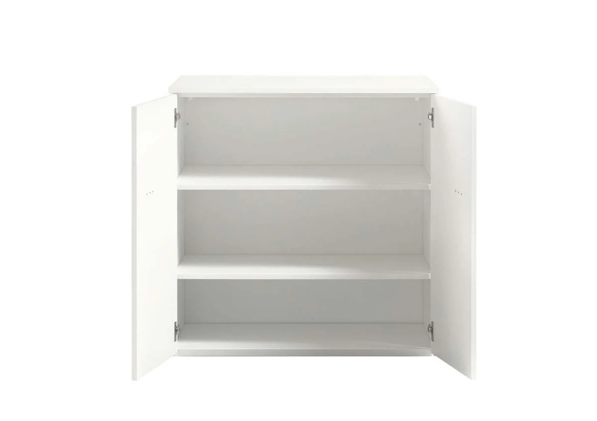 Farbe: Weiß Versand & Lieferdetails: Die Lieferung erfolgt über Speditionsversand, frei Bordsteinkante. Ihre Ware erreicht Sie sicher verpackt auf einer Einwegpalette. Die Palette verbleibt bei Ihnen Lieferzustand: Zerlegt, im Karton Material: Melaminharzbeschichtete Spanplatten Produktdetails: Kommode: 2 Türen mit zwei Einlegeböden maximale Belastungbarkeit pro Boden 15 kg inkl. 1,8 cm hohen Stellfüßen Höhe ohne Stellfüße: 93,3 cm Höhe mit Stellfüßen: 95,1 cm 5 Jahre Herstellergarantie Abmessungen: 90,2 x 53,1 x 93,3 cm (BxTxH)