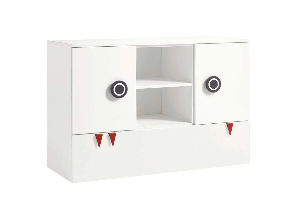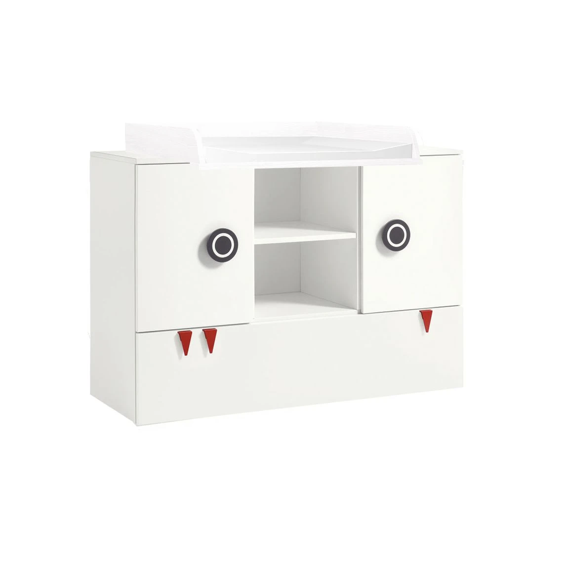 Farbe: Kommode: Weiß Wickelaufsatz: wählbar Versand & Lieferdetails: Die Lieferung erfolgt über Speditionsversand, frei Bordsteinkante. Ihre Ware erreicht Sie sicher verpackt auf einer Einwegpalette. Die Palette verbleibt bei Ihnen Lieferzustand: Zerlegt, im Karton Material: Melaminharzbeschichtete Spanplatten Produktdetails: Wickelkommode: 2 Türen mit je einem Einlegeboden 1 Schublade mit gedämpftem Selbsteinzug als Vollauszug 2 offene Fächer maximale Belastung Einlegeboden 15 kg inkl. 1,8 cm hohen Stellfüßen Höhe ohne Stellfüße: 93,3 cm Höhe mit Stellfüßen: 95,1 cm mit 3 roten "Zähnen" im Design inkl. Wickelaufsatz Wickelauflage: abwaschbarer Bezug mit Thermovliesfüllung Sicherheit durch dreiseitigen Abrollschutz 5 Jahre Herstellergarantie Abmessungen: Kommode: 135,2 x 53,1 x 93,3 cm (BxTxH) Wickelaufsatz: 135,2 x 80 x 14 cm (BxTxH) Unterstellregal jeweils: 18 x 22,5 x 93,3 cm (BxTxH) Wickelauflage: 85 x 70 x 6 cm (BxTxH)
