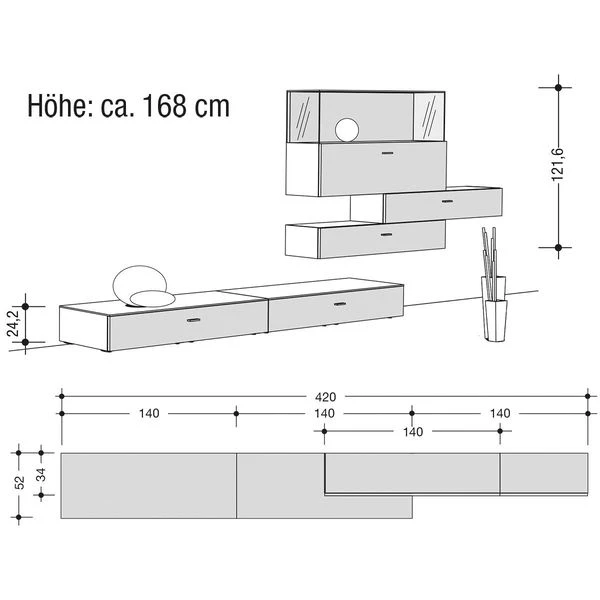 Now! No.14 By Hülsta Kombination 8 168x420x52 Kernnussbaum/Lack-weiß/Lack-Hochglanz-weiß
