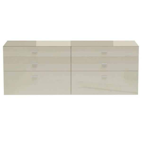 - 4R Sideboard, 6 Schubladen, Korpus Lack seidengrau, Fronten Lack Hochglanz seidengrau