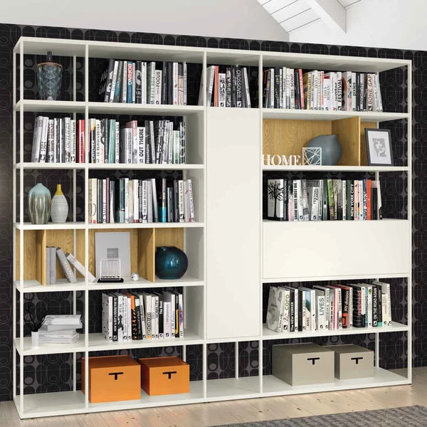 Die now! vision by hülsta Kombination 9 in Lack-weiß verfügt über viele offene Fächer, eine Klappe und eine Tür. Die now! Vision by hülsta Möbel fahren eine klare Linie und sind doch überaus wandelbar. Die Oberflächen variieren von klassischen Lack- und Hochglanzlack-Fronten über Akzentausführungen bis hin zu hochwertigen Furnieren.