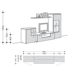 Now! By Hülsta Easy Baukasten 3R Lack-hellgrau 1 Offenes Fach, 1 Klappe